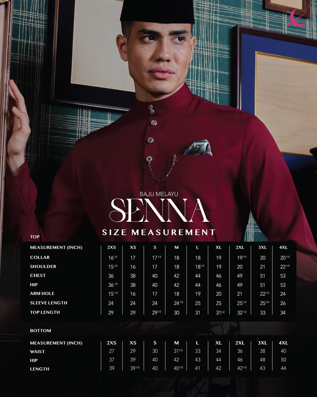 *Ukuran Potongan Baju Melayu Senna Elrah Exclusive